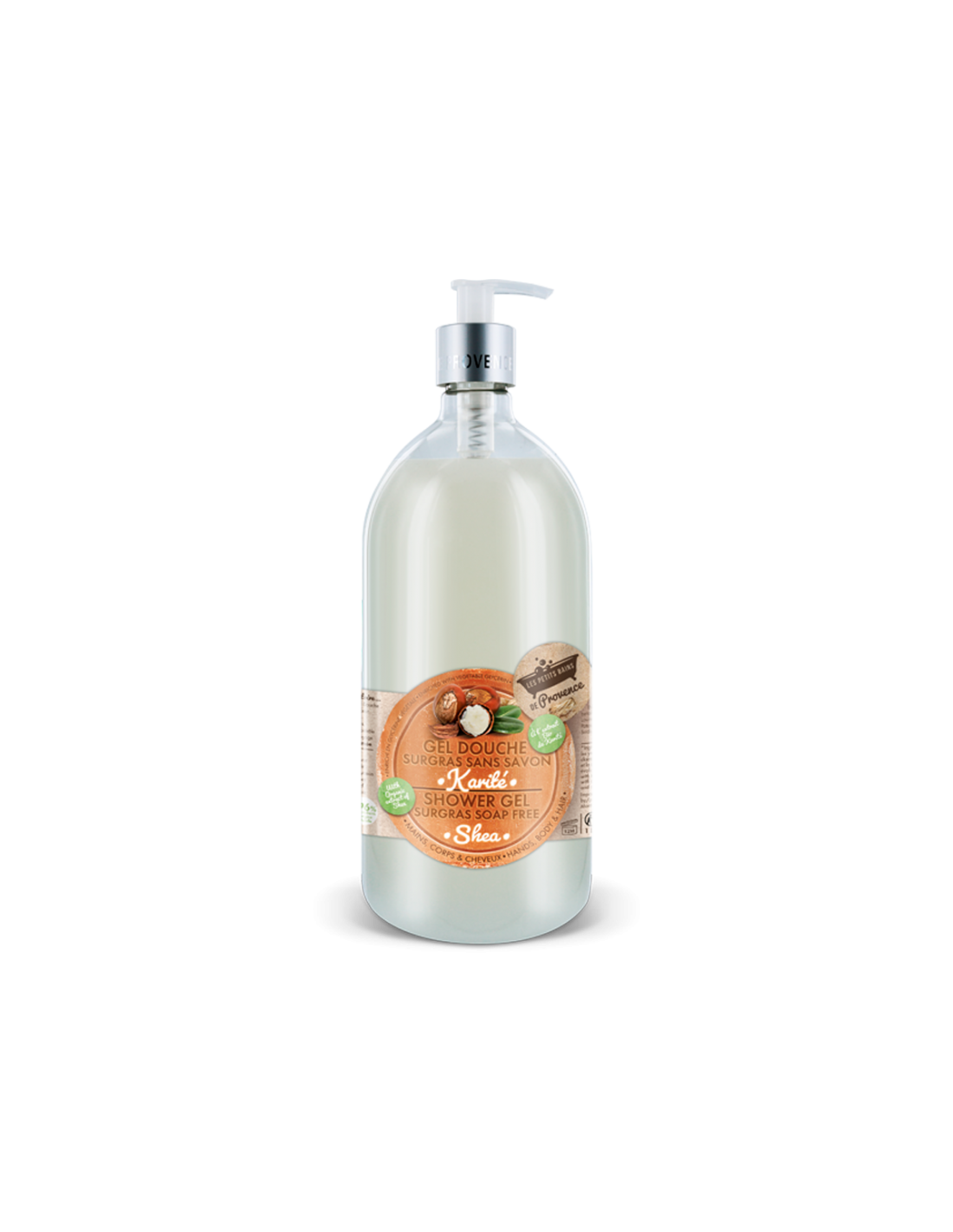 - Ce gel douche laisse un doux voile au parfum de Karité sur la peau.
