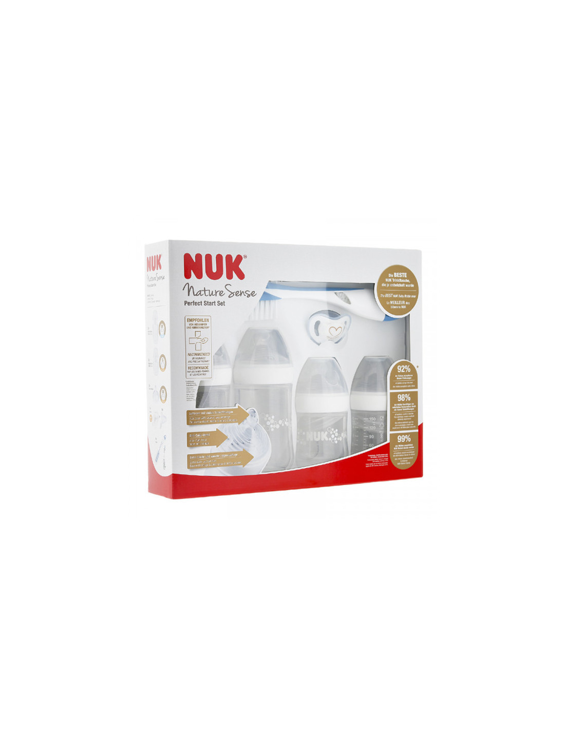 Pour bien démarrer avec bébé, Nuk vous propose ce kit composé de 4 biberons, 1 goupillon et 1 sucette.