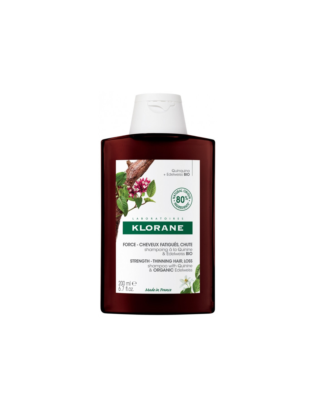Klorane Force - Cheveux Fatigués & Chute Shampoing à la Quinine et Edelweiss Bio - 200ml