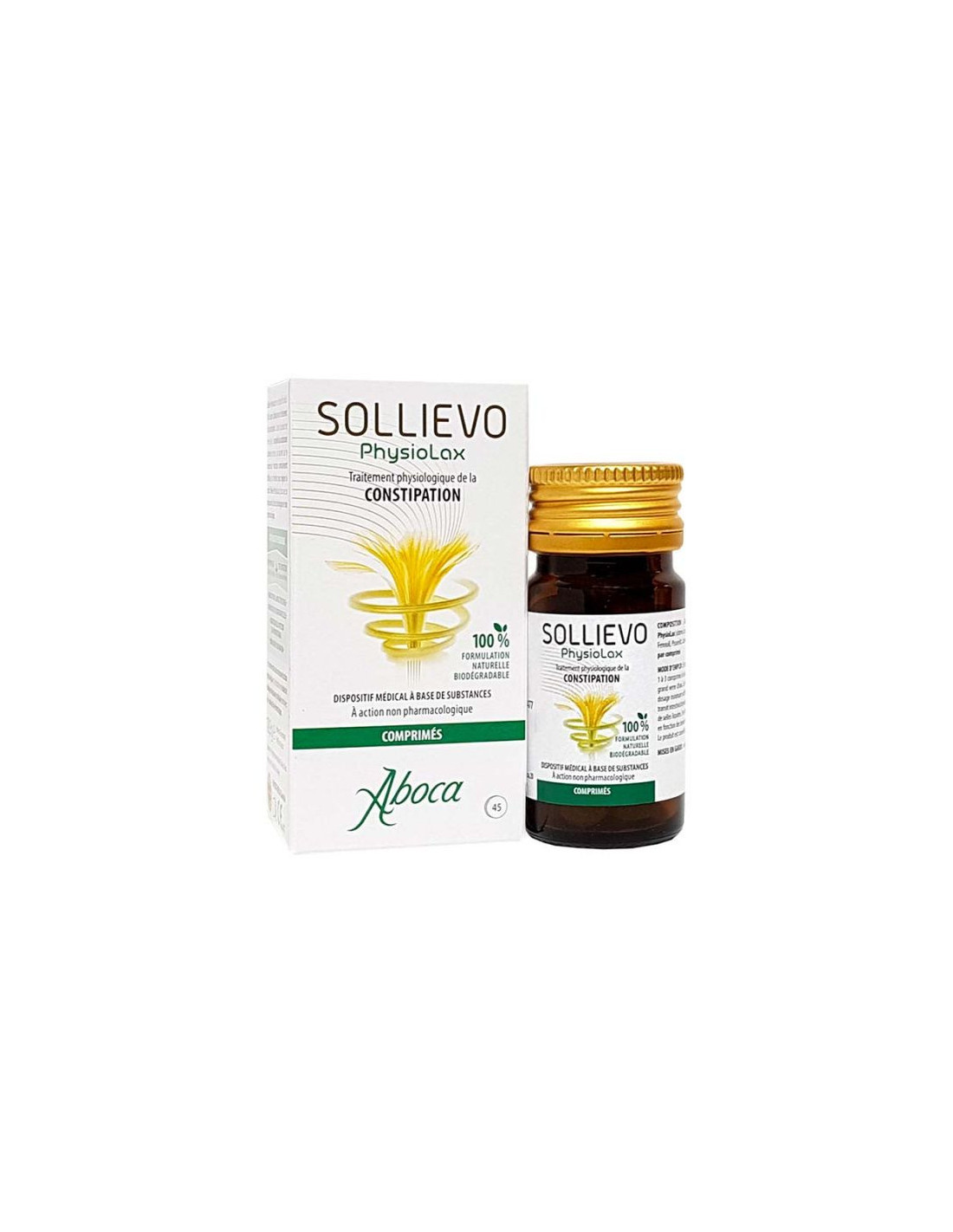 Sollievo Advanced Physiotransit est un complément alimentaire sous forme de comprimés, formulé à base d’ingrédients d’origine végétale et 100% biologique qui permet de favoriser le transit intestinal.
