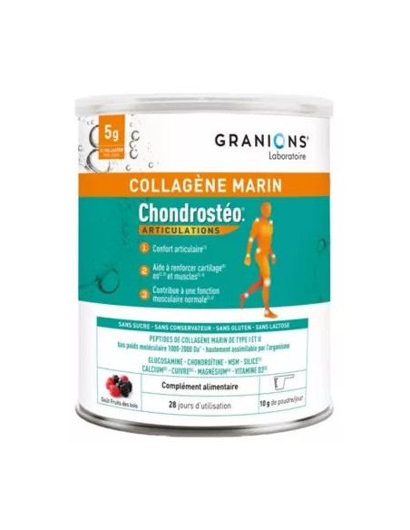 Granions Chondrostéo Collagène Marin Poudre 280 g est une solution naturelle pour soutenir la santé des articulations et des os. Ce complément alimentaire associe les bienfaits du collagène marin à d'autres ingrédients clés pour un soutien efficace et complet.