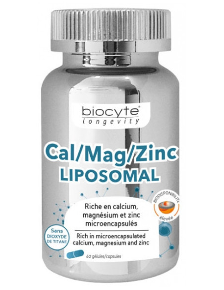 Biocyte Longevity Cal/Mag/Zinc Liposomal 60 Gélules est un complément alimentaire sous forme de gélules, à base de Calcium, de Magnésium et de Zinc.