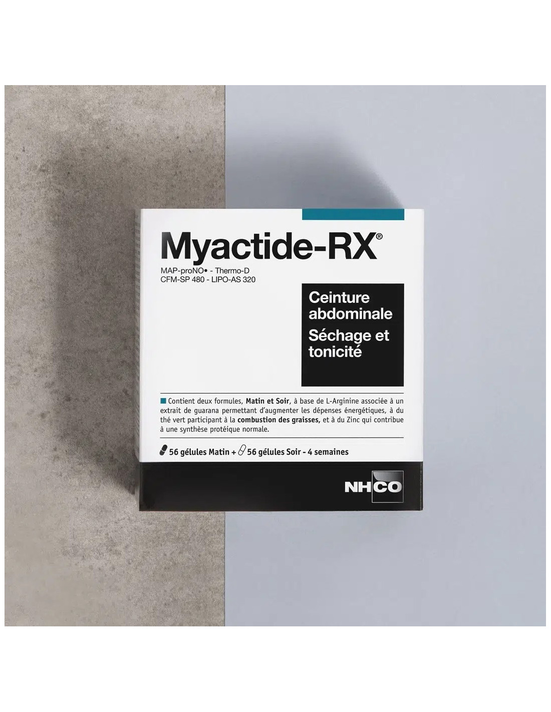 Myactide-RX complément alimentaire des Laboratoires NHCO, 2 formules proposées : une pour le matin et une autre le soir, élaborées tout spécifiquement pour les graisses abdominales.