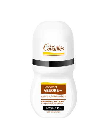 Découvrez le nouveau déodorant Absorb+ Invisible 48H de Cavaillès. Sa nouvelle technologie absorbe 5 fois plus d'humidité que le talc. Résultat : elle agit même lors des pics de transpiration pour prévenir l'apparition d'odeurs et d'auréoles tout au long de la journée. Sa formule est enrichie en agents anti-traces qui préviennent l'apparition des traces jaunes et blanches sur vos vêtements.