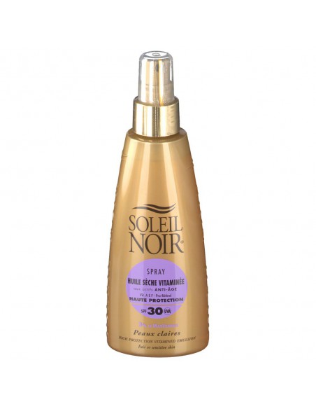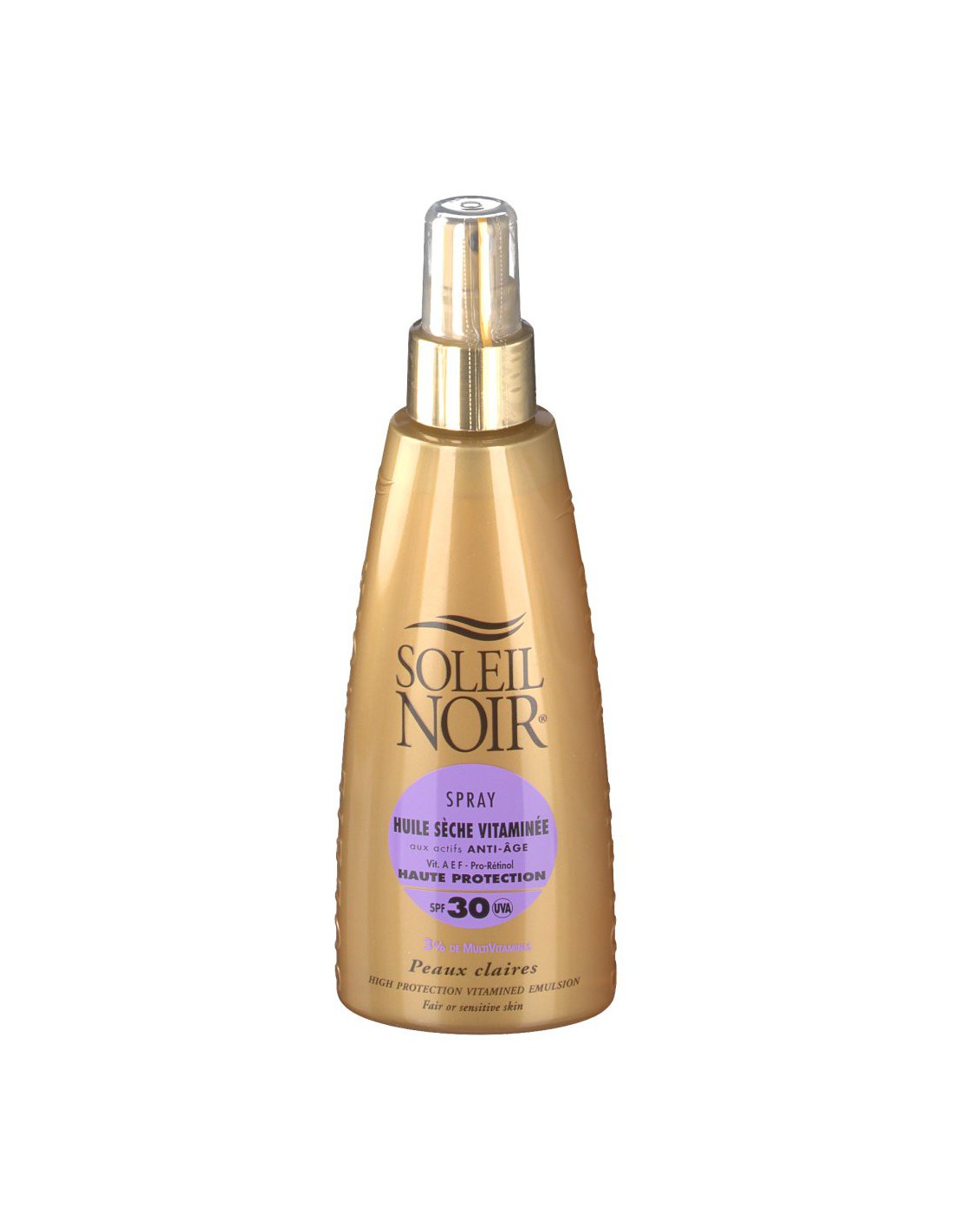 Soleil Noir Huile Sèche Vitaminée SPF 30 Spray 150 ml peaux claires et sensibles est une protection solaire haute, SPF 30.