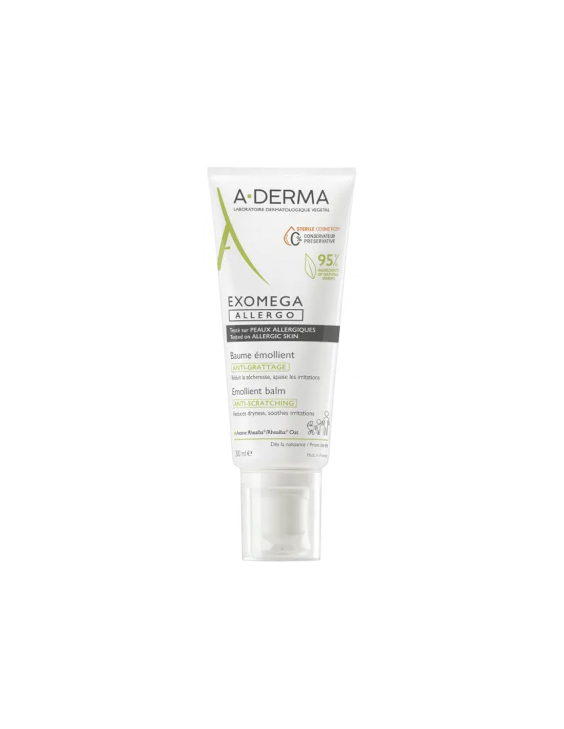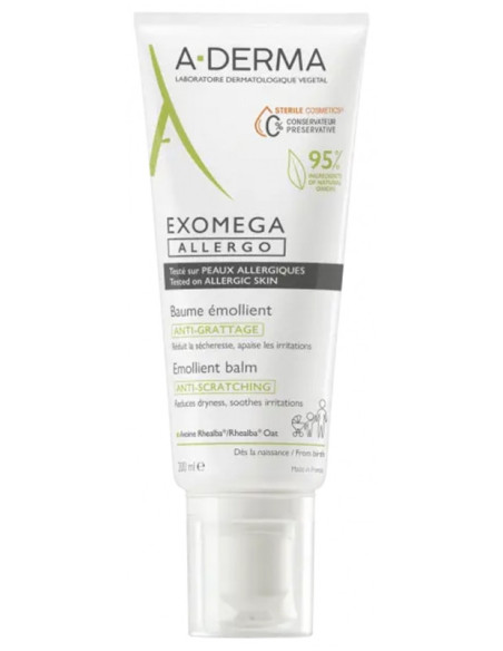 A-DERMA Exomega Allergo Baume Émollient Anti-Grattage 200 ml est un soin visage et corps qui apaise la sécheresse, les rougeurs et irritations, réduit les démangeaisons au niveau des paupières des peaux sèches à tendance à l'eczéma atopique, dès la naissance.