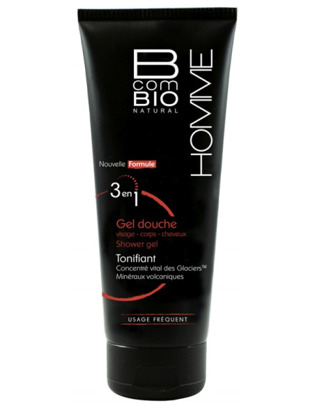 BcomBIO Homme Gel Douche 3en1 200 ml est un gel douche tonifiant pour usage fréquent à triple action : Nettoie le visage, le corps et les cheveux sans les dessécher, Fortifie et discipline les cheveux. Purifie le cuir chevelu, Libère un parfum frais et intense pour un effet énergisant instantané. Il contient un concentré vital des glaciers™ qui rafraîchit et adoucit, des minéraux volcaniques qui tonifient et fortifient. La peau et les cheveux sont plus doux et souples. Le coiffage est facilité, le cuir chevelu est assaini, l'apparition des pellicules est limitée.