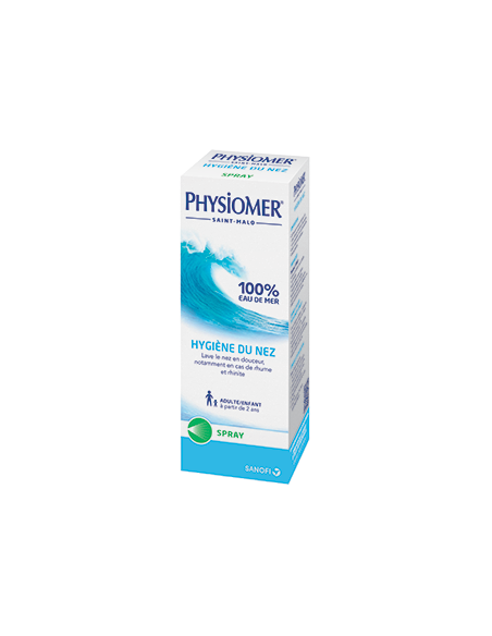 Physiomer Spray lave, hydrate et désencombre les fosses nasales. Son jet en spray permet une utilisation au quotidien et évacue les sécrétions en excès tout en douceur.
