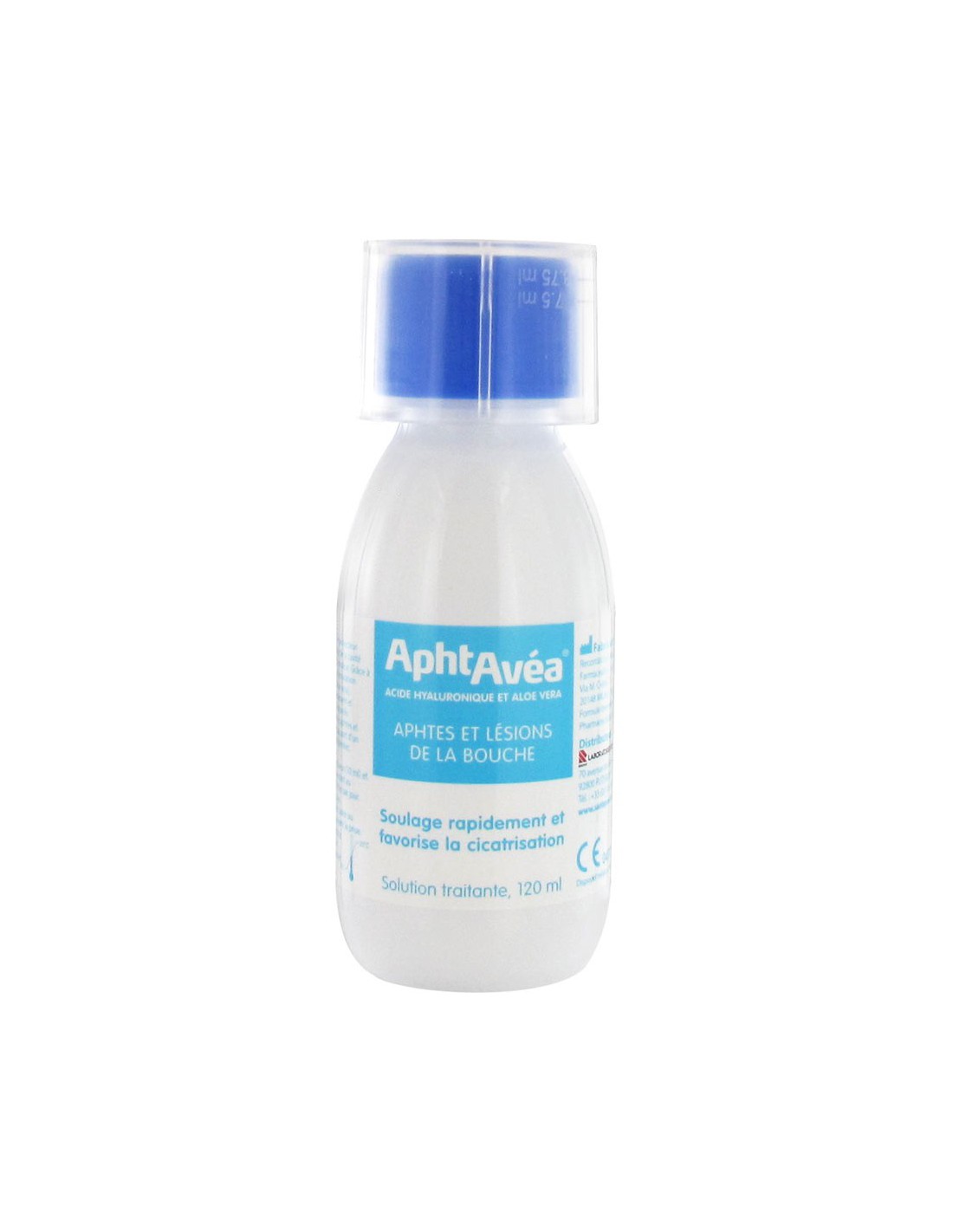 AphtAvéa Acide Hyaluronique Et Aloe Vera Solution Traitante 120ml soulage rapidement et favorise la cicatrisation des aphtes et lésions de la bouche.