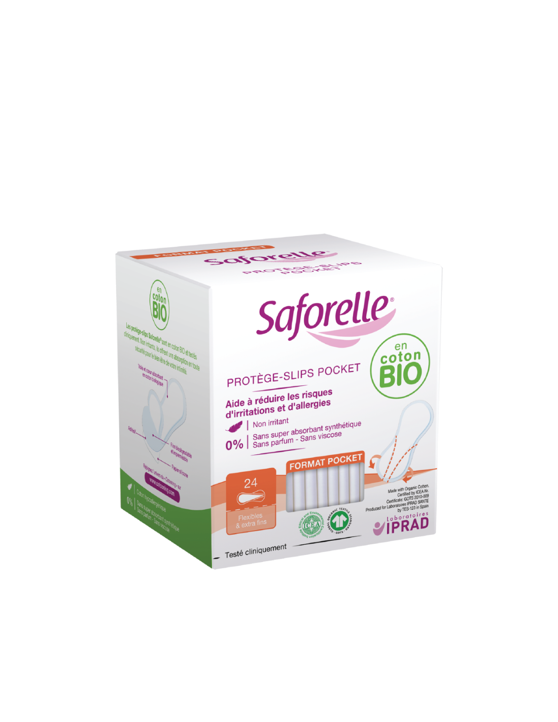 Saforelle Coton Protect offre, à toutes les femmes à la recherche de protections hygiéniques sûres, respectueuses et douces pour leur intimité, des protège-slips en Coton BIO hypoallergénique, qui garantissent sécurité et douceur au moment des règles. Les protège-slips Saforelle Coton Protect, en Coton BIO et cliniquement testés non irritants, offrent une absorption en toute