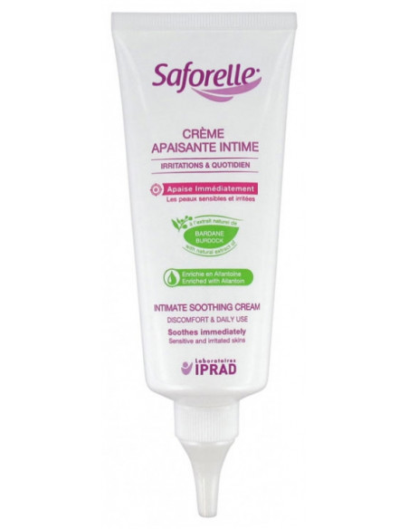 Saforelle Crème Apaisante Intime 100 ml est un soin enrichi en Bardane et en Allantoïne qui calme immédiatement les irritations et les sensations d'inconfort liées aux désagréments intimes.
