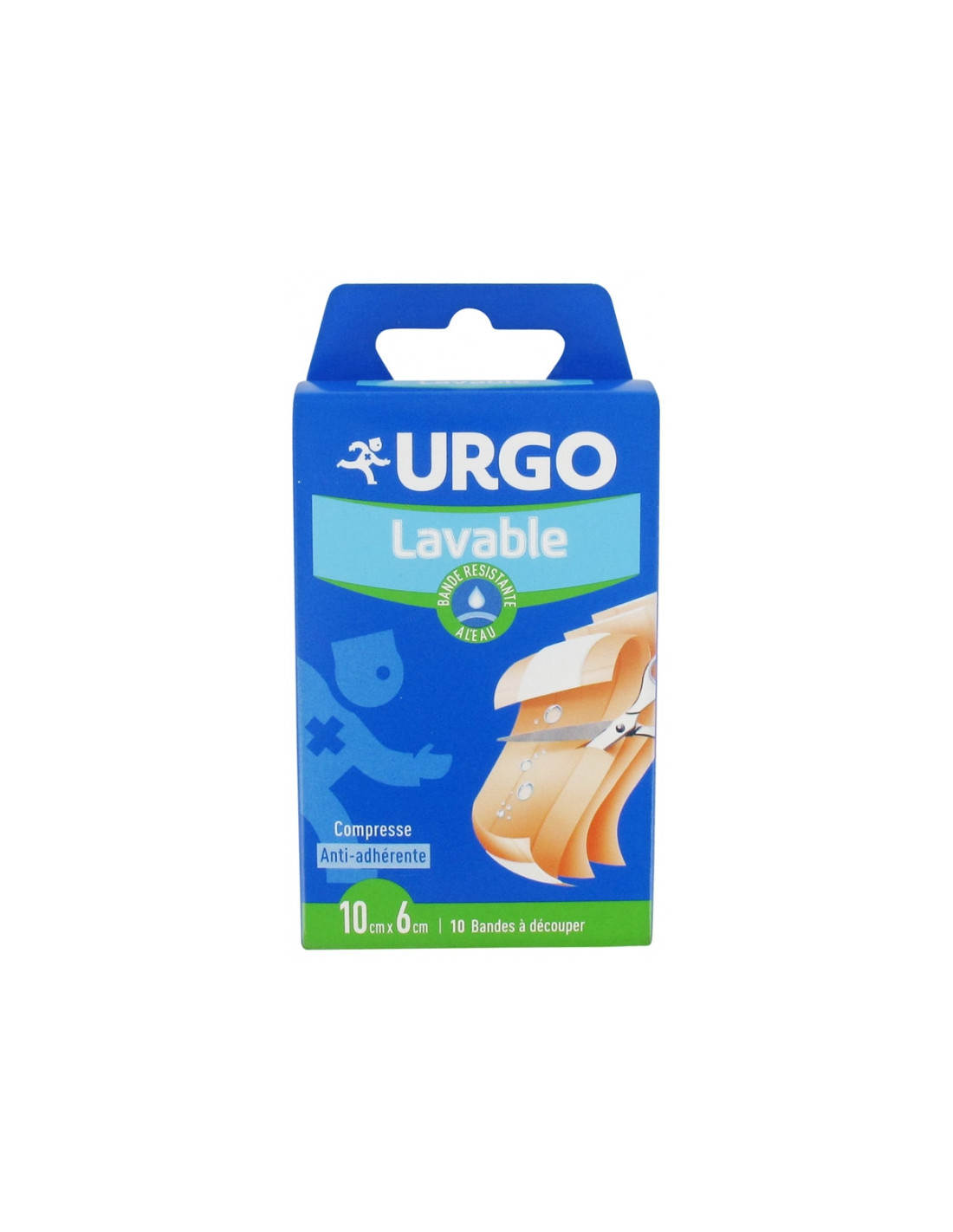 Urgo Lavable Bande Résistante à L'eau 10 Bandes 10 cm x 6 cm est une bande perméable à l'air qui laisse respirer la peau et qui résiste à l'eau. Elle ne colle pas à la plaie grâce à sa gaze anti-adhérente.