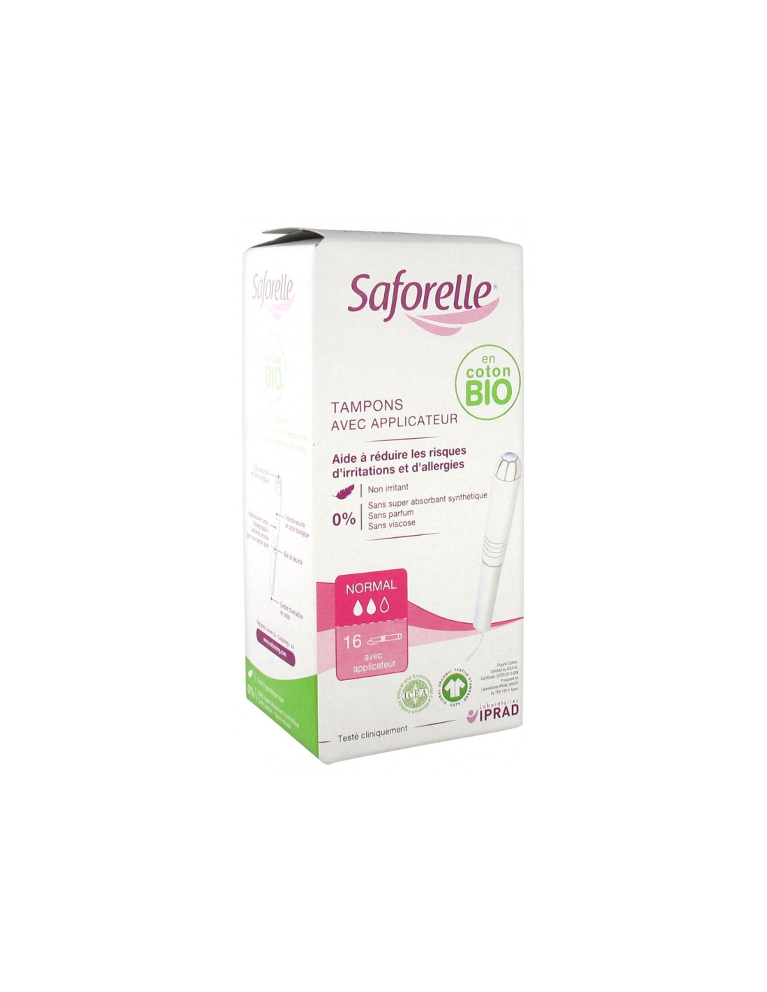 Saforelle 16 Tampons Normal avec Applicateur sont des tampons en coton Bio, qui aident à réduire les risques d'irritations et d'allergies.