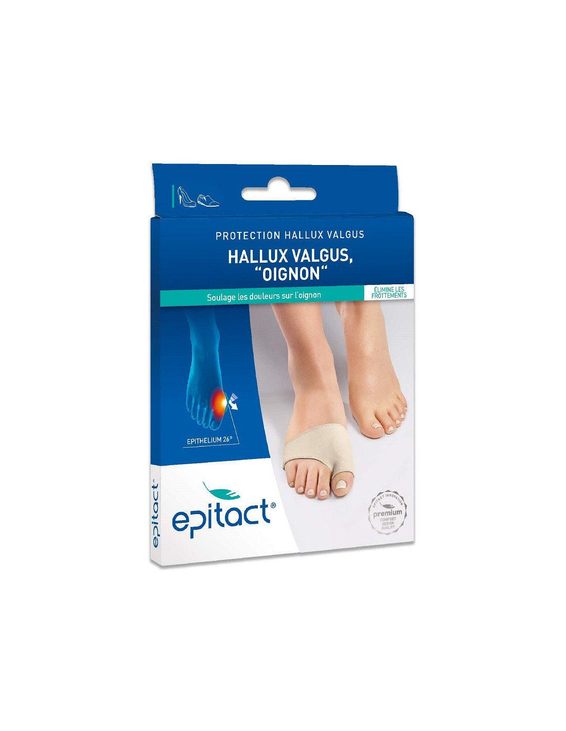 Protections Hallux Valgus simples Epitact, pour soulager les douleurs liées à l'hallux valgus (oignon). Pour soulager les douleurs liées à l'hallux valgus (oignon), une simple protection mécanique est parfois suffisante car elle limite les frottements intempestifs.