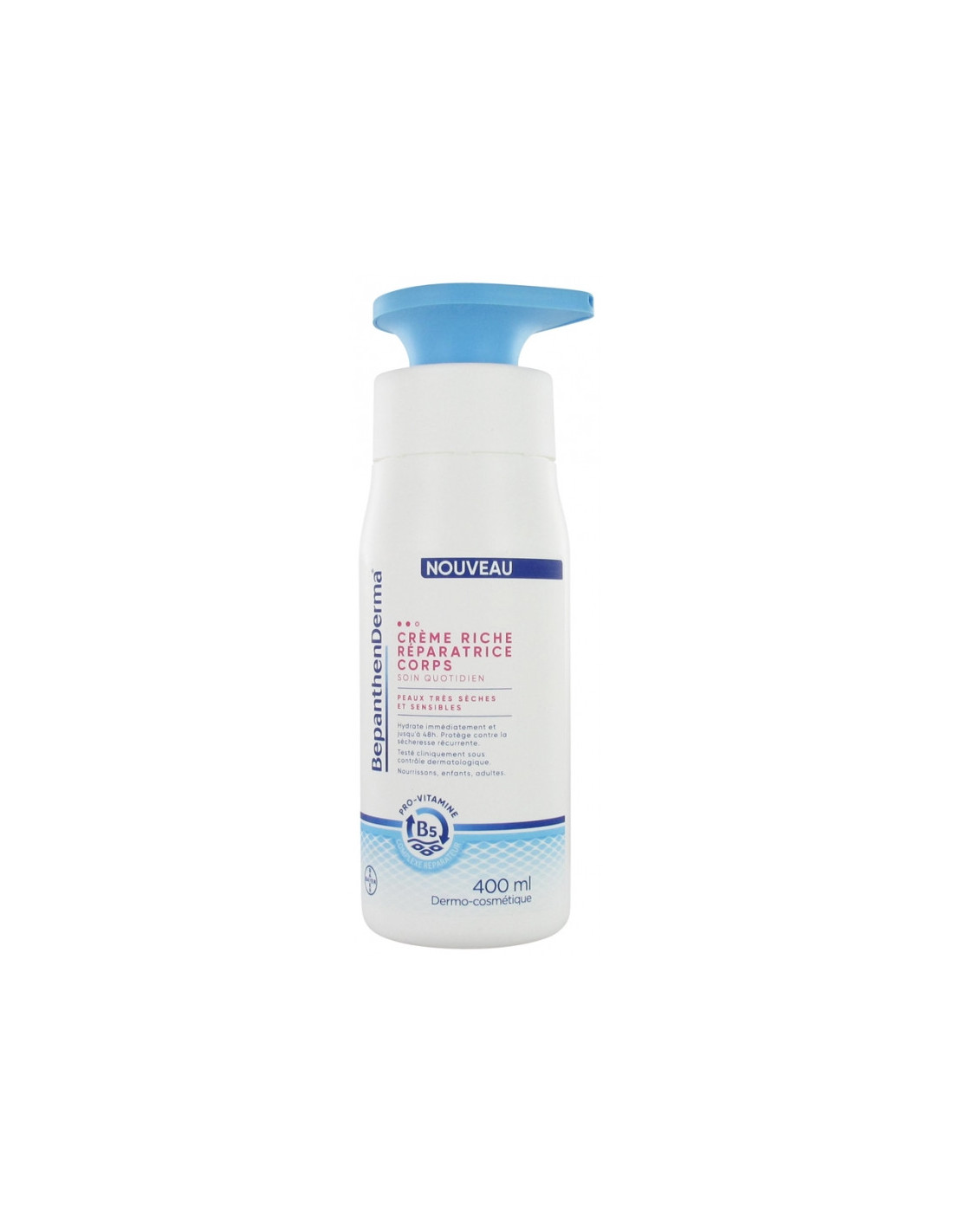Bepanthen Derma Crème Riche Réparatrice Corps 400 ml est un soin dermo-cosmétique quotidien spécifiquement formulé pour les peaux très sèches et sensibles de toute la famille (y compris nourrissons).