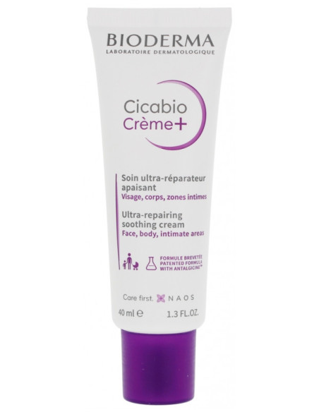Bioderma Cicabio Crème+ 40 ml est un soin ultra-réparateur apaisant et anti-marques cicatricielles. Il s'utilise aussi bien sur le visage que sur le corps, y compris les zones intimes et convient aux adultes, aux enfants et aux nourrissons (hors prématurés). Il est indiqué : lors d'atteintes épidermiques fréquentes (coupures et brûlures superficielles, écorchures...), à la suite d'actes chirurgicaux ou d'embellissement, en soins de la maman (cicatrice de césarienne, épisiotomie) ou en soins des bébés (zone du siège, contour de la bouche...). Cette crème favorise la réparation cutanée et garantit une cicatrisation optimale en respectant le cycle naturelle de cicatrisation : elle facilite la reconstruction épidermique grâce à son complexe réparateur, elle hydrate la peau en continu, elle protège la peau des agressions extérieures par sa texture "effet pansement", elle apaise les sensations de démangeaisons et d'inconfort via l'Antalgicine, elle restaure le microbiome cutané essentiel à une cicatrisation de qualité, elle facilite le massage des cicatrices pour aplanir et assouplir la peau.