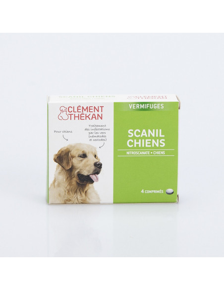 Scanil Chiens Clément Thékan est un vermifuge sous forme de comprimés contre les infestations par les cestodes (vers plats) ou nématodes (vers ronds).