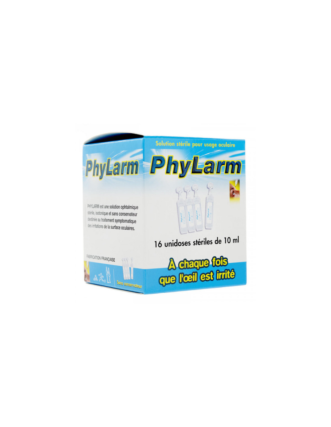 La solution ophtalmique Phylarm a pour rôle de lubrifier les yeux en cas de sécheresse oculaire ou d’irritations. Elle permet ainsi d’humidifier les muqueuses et d’aider à chasser les impuretés. Ce produit pour yeux a donc été conçu pour l’hygiène oculaire y compris post opératoire chez l'enfant et l'adulte ainsi que pour le traitement symptomatique des pathologies de la surface oculaire telles que :