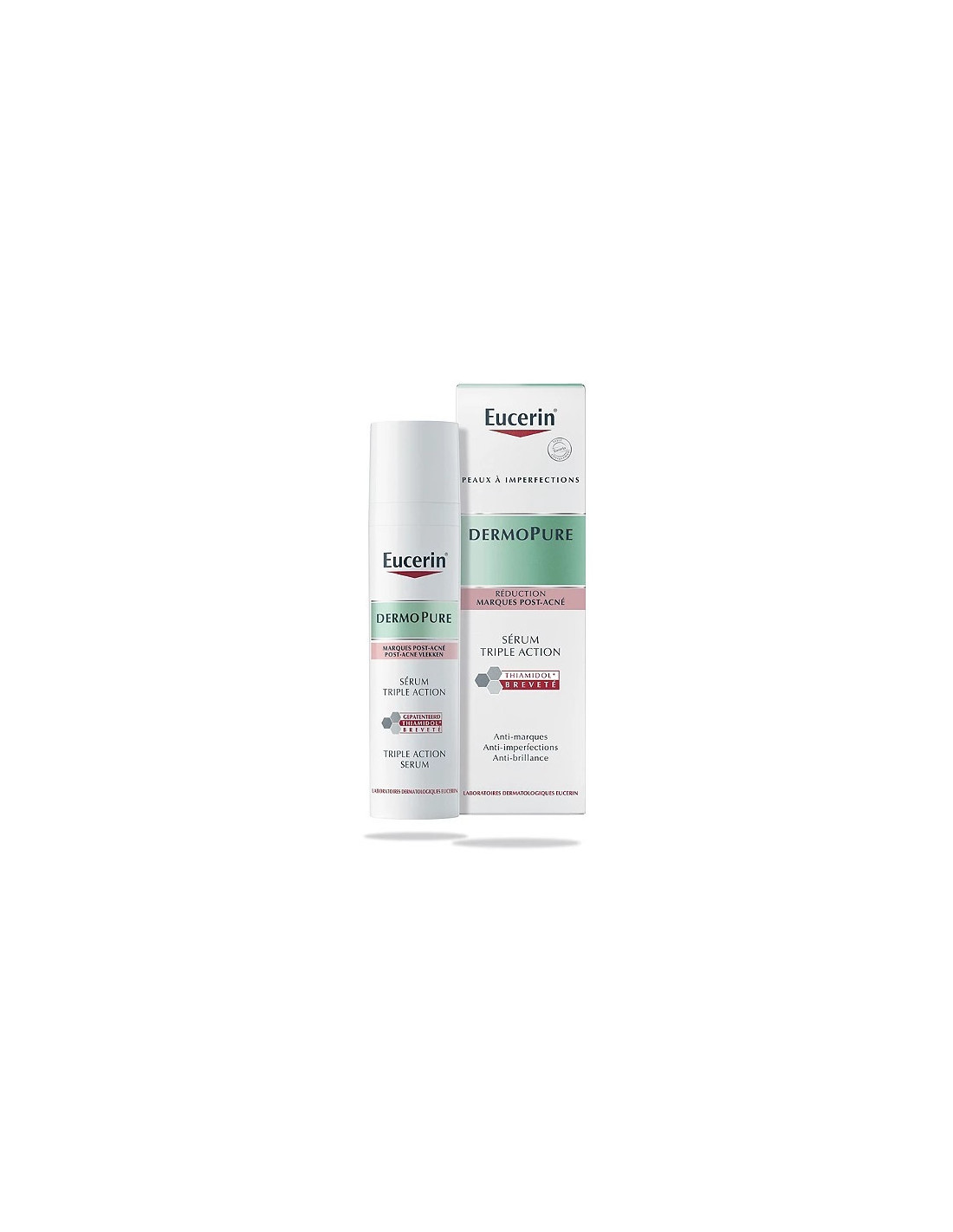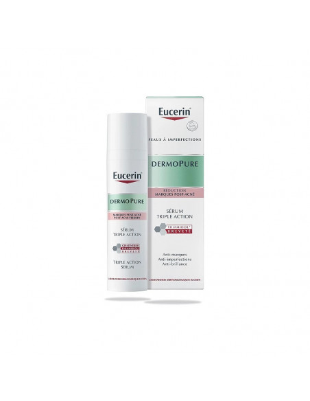 Sérum triple action Dermopure des Laboratoires Eucerin, un soin concentré formulé pour combattre les marques post-acné, les imperfections et pour diminuer la brillance.