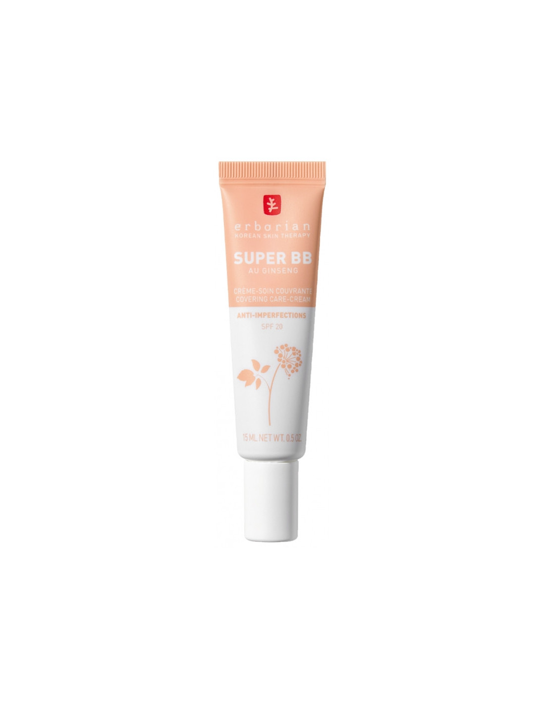 Erborian Super BB au Ginseng 15 ml - Teinte : Clair est une crème-soin couvrante anti-imperfections SPF20. Mi-teint mi-soin, elle est boostée pour camoufler et agir sur vos imperfections sans effet de matière :
