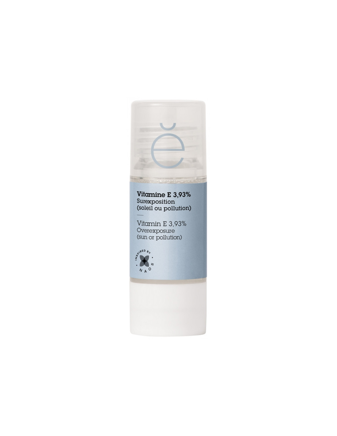 Etat Pur Vitamine E 3,93% 15 ml est un véritable booster anti-oxydant pour la peau formulé avec de la vitamine E sous sa forme la plus active : l'alpha-tocophérol. Puissant antioxydant, la vitamine E renforce les capacités naturelles de défense de la peau vis-à-vis des agressions environnementales et du stress (pollution, UV, mode de vie, fumée de cigarette...).