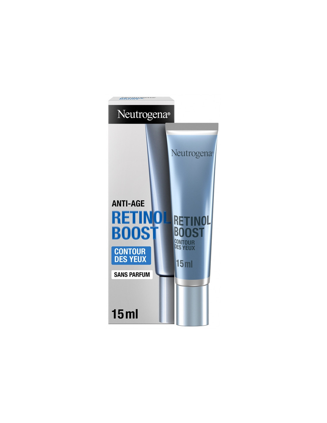 Neutrogena Retinol Boost Contour des Yeux Anti-Âge 15 ml est un soin conçu pour combattre les signes visibles de l'âge : ridules et pattes d'oie, pour hydrater et pour améliorer l'apparence du teint et la texture de la peau du contour des yeux. Le rétinol pur, une forme de vitamine A agit comme accélérateur de la production de collagène et stimulateur du renouvellement cellulaire à la surface de la peau. L'extrait végétal de myrte booste l'efficacité du rétinol.